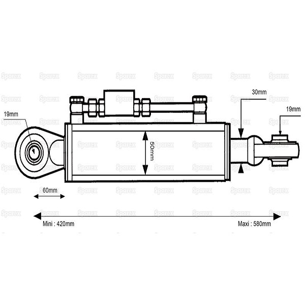 Hydraulic Top Link (Cat.1/1) Ball and Ball, Cylinder Bore: 50mm, Min. Length: 540mm