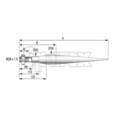 / Loader Tine – Straight 1100mm, Thread size: M28 x 1.50 (Square) To fit as: KK241166