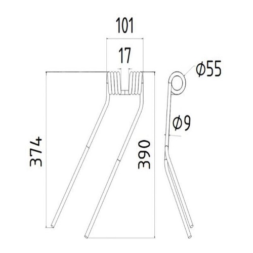 Tedder haytine - LH - Length: 374mm, Width: 101mm, Ø9mm - Replacement for Deutz-Fahr To fit as: 06229776 quantity