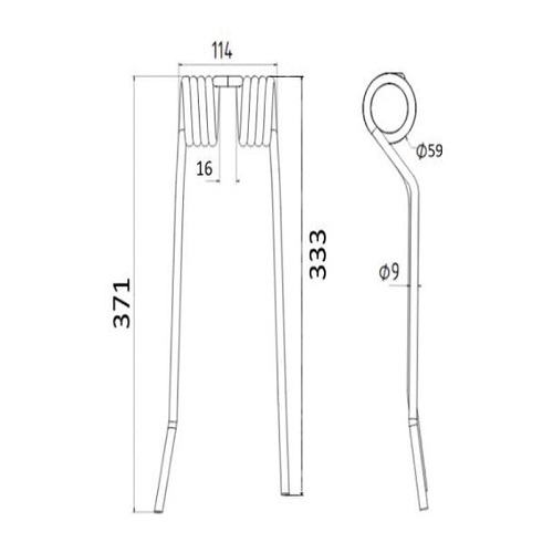 Tedder haytine - RH - Length: 371mm, Width: 100mm, Ø9mm - Replacement for PZ To fit as: PZ224 quantity