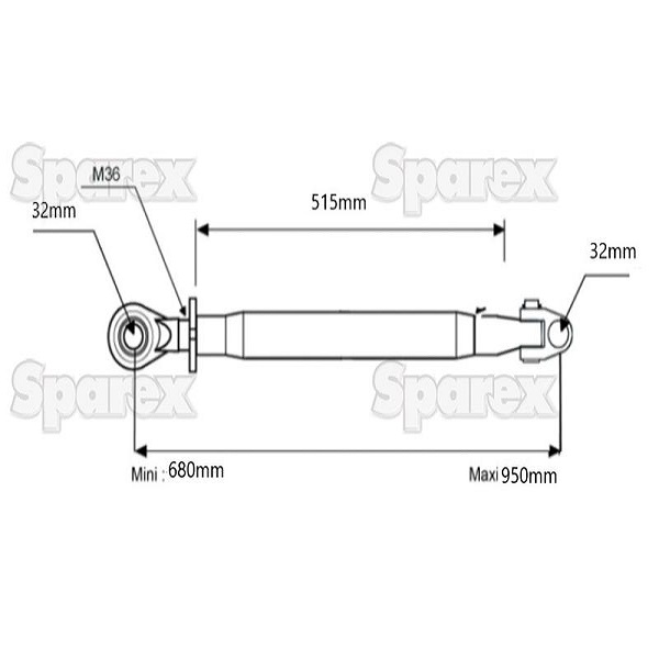 Top Link Heavy Duty (Cat.3/3) Knuckle and Ball, M36x3, Min. Length: 680mm